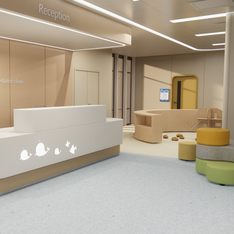 O pavimento homogêneo da Relle combina resiliência de grau médico com flexibilidade estética, criando ambientes mais seguros,