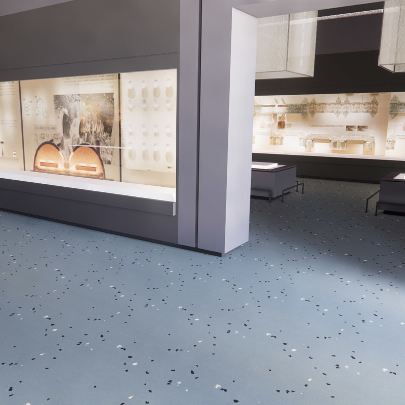 Superfície PUR patenteada: fácil de limpar, resistente a manchas, não tóxica (pronta para museus). Plastificantes 100% biológicos: ≥75% de materiais sustentáveis (ambientais a nível mundial). Baixo COVT: < 10 μg/m3 após 28 dias (conservação do artefato através de ar limpo). Estrutura homogénea de borracha: durável e estável para exposições com muito tráfego. |