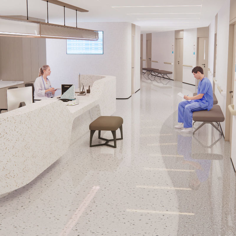 ✔️Segurança e conforto: As texturas resistentes ao deslizamento e as propriedades de redução de ruído aumentam a recuperação do paciente, enquanto o suporte amortecido reduz a fadiga do pessoal.