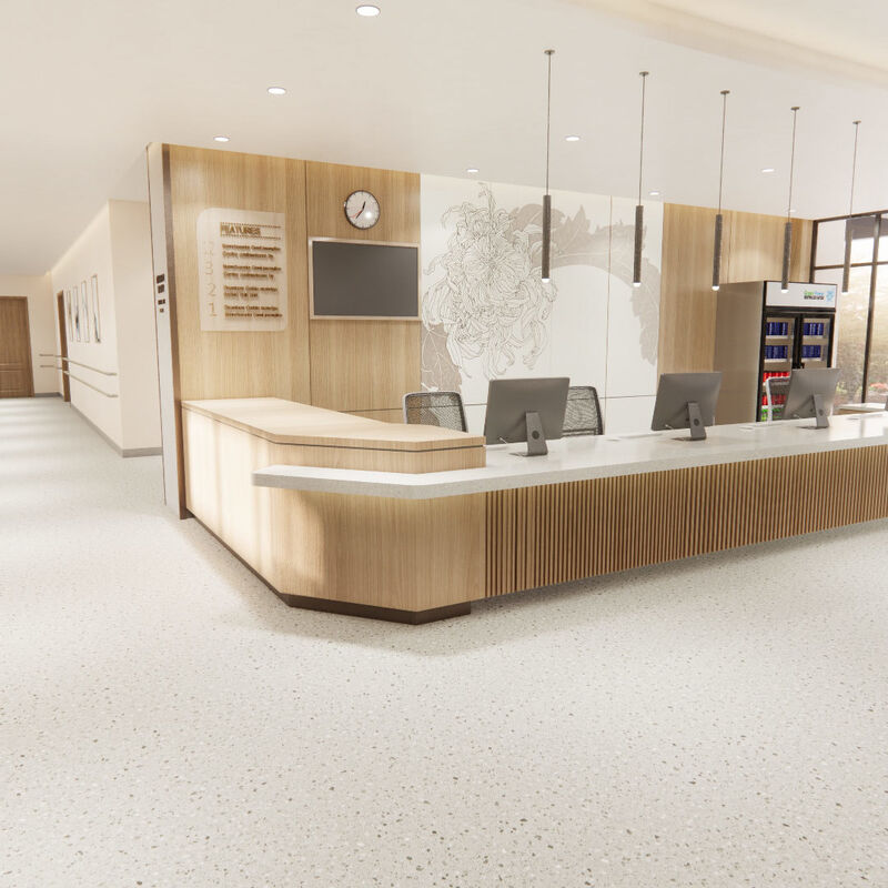 Pavimento para lares de idosos higiênico e sem rejunte: LVT multicamadas com aparência de pedra