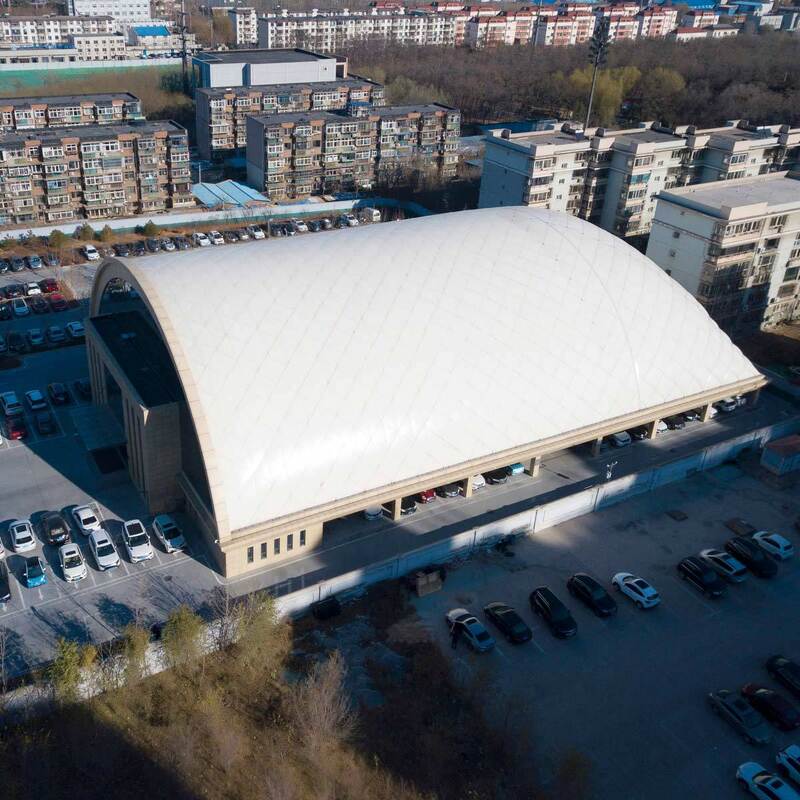 Esta membrana de construção PVDF tem espessuras padrão de 1,0 mm a 1,03 mm, larguras de 1000 mm a 1800 mm e comprimentos de 50 m a 100 m. As cores personalizáveis são oferecidas.Possui excelente resistência a intempéries UV auto-limpeza alta resistência retardador de chama e isolamento térmico, e é viável para parede do telhado do estádio e estrutura de membrana de tensão.