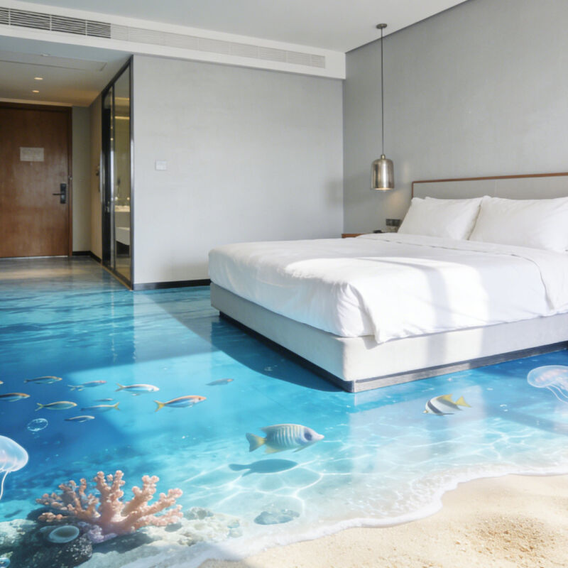 Customizable 3D floor stickers support your own designs with high-definition printing; featuring a multi-layer structure for soft comfort, wear resistance, and suitability for hotels, malls, and various commercial spaces.