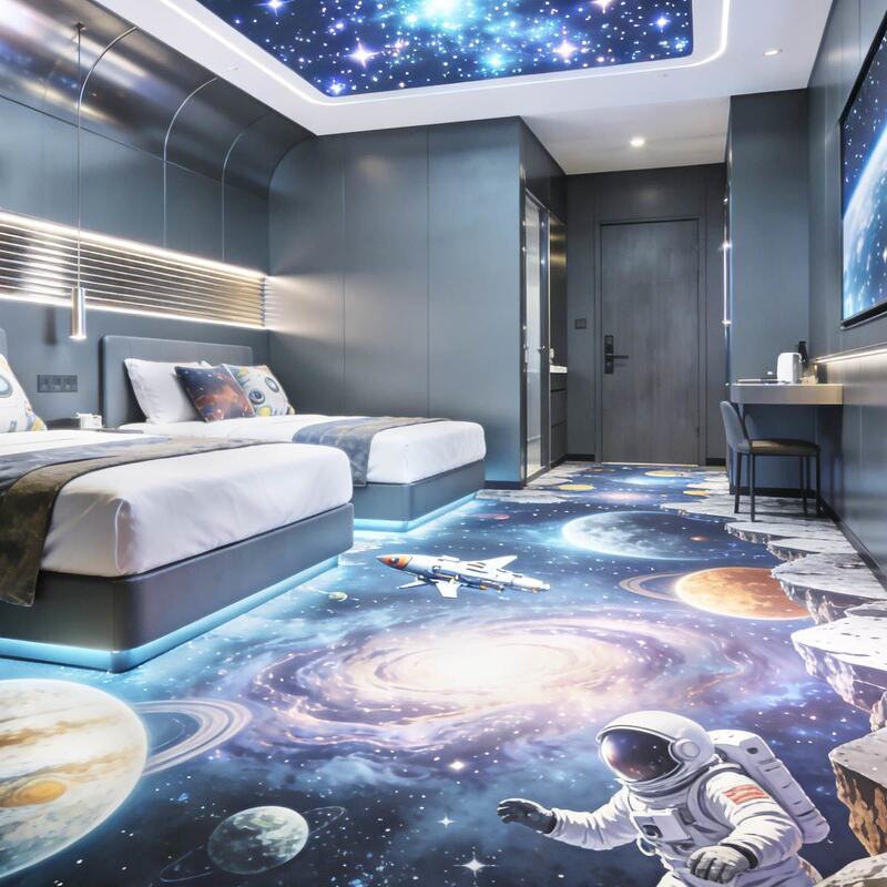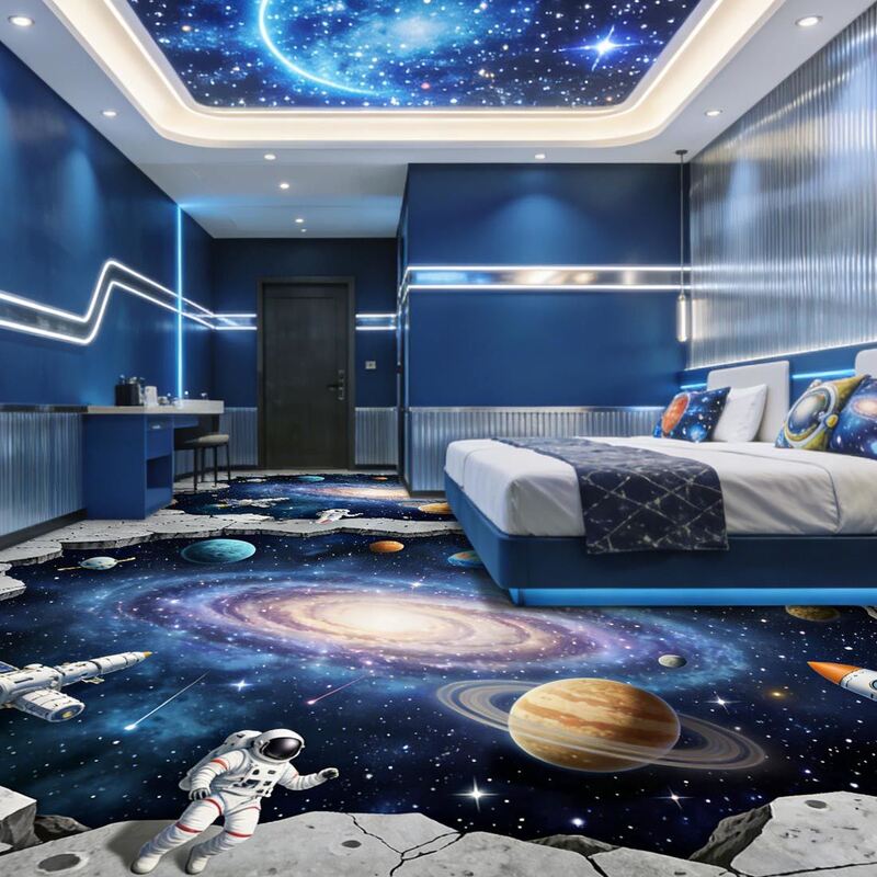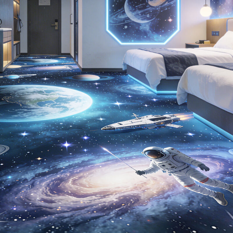 Autocolantes de piso 3D personalizáveis suportam seus próprios desenhos com impressão de alta definição; com uma estrutura de várias camadas para conforto suave, resistência ao desgaste e adequação para hotéis, shoppings,e vários espaços comerciais.