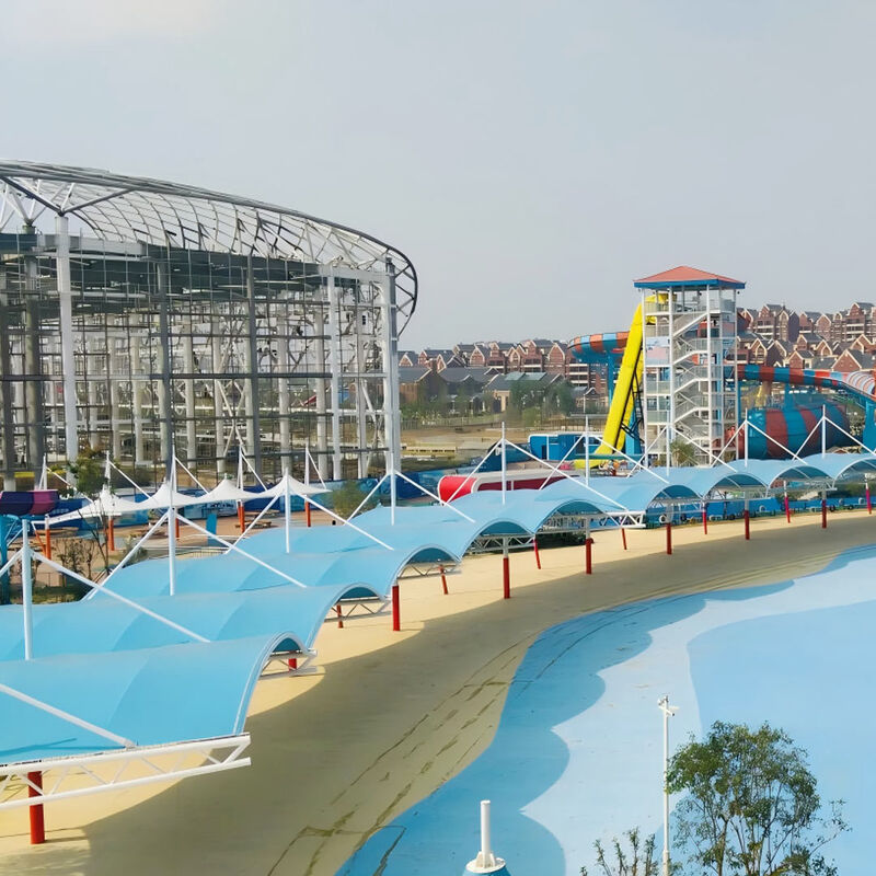 As estruturas de membrana de tração consistem em membrana de alto desempenho, cabos de aço e suportes, estabilizados por pré-tensão.e estéticaCom construção fácil, instalação rápida, peso leve, alta resistência, segurança e durabilidade, são uma forma arquitetônica moderna altamente expressiva.